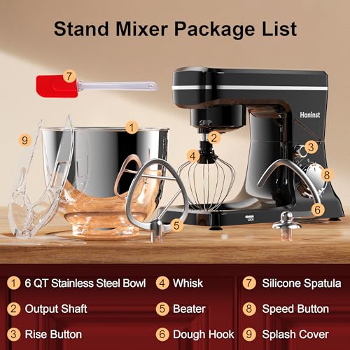 10-Speed Stand Mixer with 8-in-1 Splash Guard, Tilt-Head, 6QT Stainless Steel Bowl + Dishwasher-Safe Dough Hook/Whisk/Beater/Spatula for Baking Bread, Cakes, Cookies, Black
