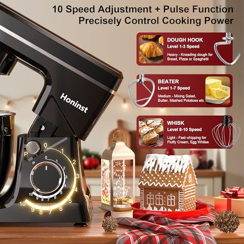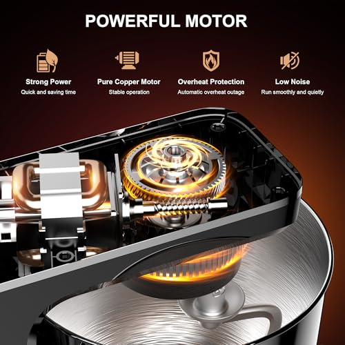 Versatile Attachments Included: Our baking mixer comes with a dough hook, whisk, beater and a silicone spatula, enabling you to tackle a variety of recipes, from heavy dough to light meringues, ensuring professional-quality results every time