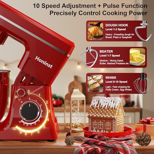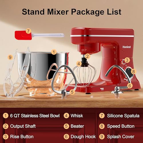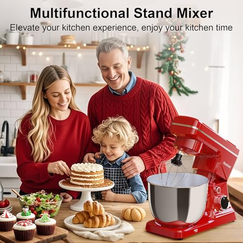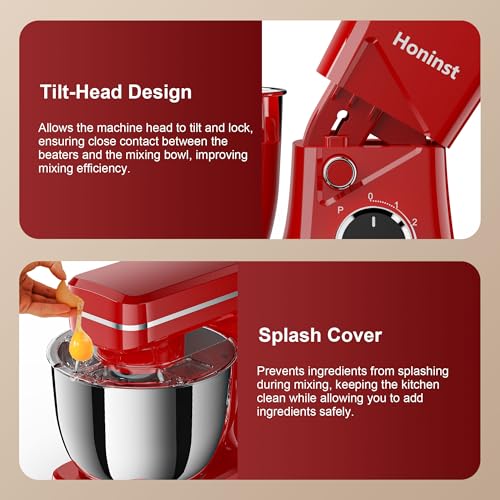 10-Speed Stand Mixer with 8-in-1 Splash Guard, Tilt-Head, 6QT Stainless Steel Bowl + Dishwasher-Safe Dough Hook/Whisk/Beater/Spatula for Baking Bread, Cakes, Cookies, Red