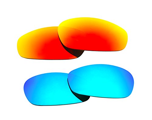 2 Pairs Polarized Replacement Sunglasses Lenses for Oakley Split Jacket with UV Protection(Ice Blue and Fire Red Mirror)