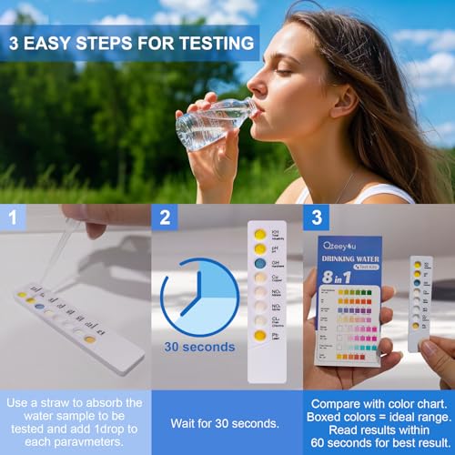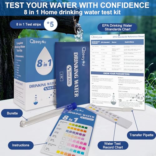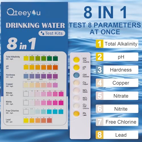 【8 IN 1 WATER TEST KIT】Water testing kits for drinking water can detects 8 parameters of water, including Alkalinity, Lead, pH, Hardness, Copper, Nitrate, Nitrite & Chlorin. Our drinking water test kit, ensuring that you’re fully informed about the quality of your water, and allowing you to detect any imbalances.