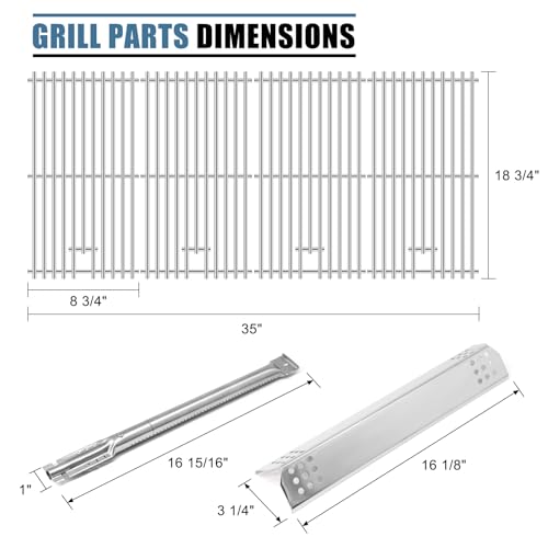 ▶PRODUCT INFORMATION◀ -Grill Grate Dimensions: 18 3/4″ x 8 3/4″ for each, 18 /4″ x 35″ for total, Material: Stainless Steel. Heat Plate Dimensions: 16 1/8″ x 3 1/4″, Material: Stainless Steel. Grill Burner Dimensions: 16 15/16″ x 1″, Material: Stainless Steel.