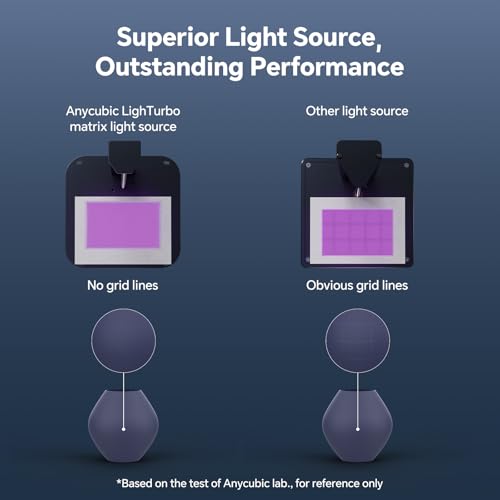 【Stabilized Light Source】Anycubic LighTurbo matrix light source system ensures ultra-stable layer curing for smoother surfaces and near-invisible layer lines. Achieve rapid 1.5-second exposures – print faster without sacrificing detail