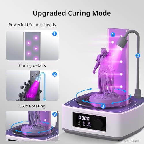 【Powerful Curing Light】By adopting a brand-new arrangement of light beads and lens light source, Anycubic Wash & Cure 3.0’s curing uniformity has been enhanced by 20%* compared to its predecessor 2.0. The powerful light source for more efficient full curing of models