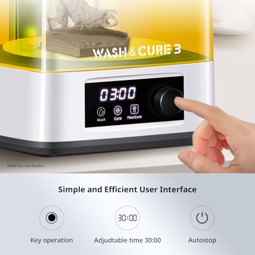 【Easy to Use】 Cleaning and Curing Dual Mode and Enhanced Gooseneck Lamp Cure Mode are individually keyed and can be easily switched on and off at the touch of a button. Cure time can be adjusted from 1 to 30 minutes with the rotary knob control. Wash and cure 3 produces less noise during operation, providing a quiet working environment.
