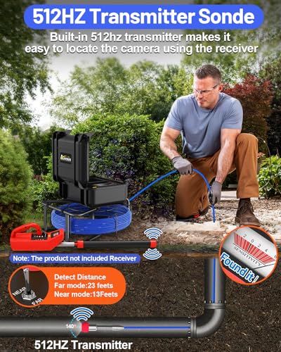 Self-Leveling Sewer Camera with 512Hz Sonde: The Anysun sewer camera features an automatic self-leveling gravity bearing, ensuring the screen image always remains upright for a better viewing experience. The inspection camera probe built-in a 512Hz transmitter capable of emitting a 512Hz frequency signal. This can be paired with receivers (Not included receiver) that accept a 512Hz signal to locate the camera head, thereby identifying the position of blockages and solving pipeline issues.