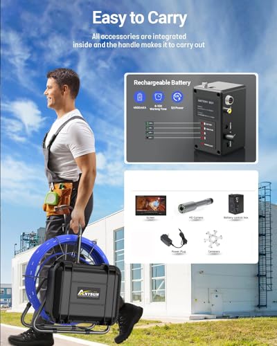 Long Battery Life and One-Year Service: The self leveling sewer camera with 512hz sonde comes with a built-in 4500mAh rechargeable battery, lasting 8-10 hours on a full charge, suitable for outdoor use, no need to worry about lack of power anymore. Anysun’s newly upgraded sewer pipe camera offers a one-year service. If you encounter any problem, we’re here to serve you, and we’ll assist you in resolving them promptly.