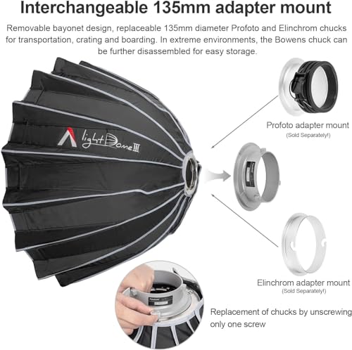 💡【With Carry Bag】Light Dome III’s flat-pack design. their cylindrical shape when packed, the Light Dome III’s quick-setup speed ring folds into a slim, flat profile. bearing in mind easy disassembly of the Bowens mount bracket all the way through transportation, packing, or go back and forth, ensuring convenient storage and portability