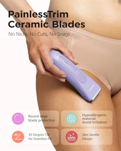 ✨ LADYSPOT Skin-Protective TECH: Help reduce nicks and cuts. This women bikini trimmer features advanced Aerospace-grade hypoallergenic ceramic blades that glide effortlessly, ensuring a silky-smooth finish without any irritation.