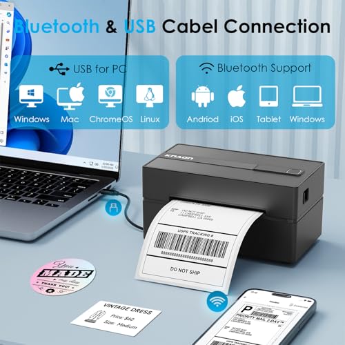 Bluetooth Wireless Connection: KNAON Bluetooth shipping label printer enables wireless printing. For iOS and Android users, need to download the ‘FlashLabel Pro’ App from Apple Store or Google Play. Windows 7 or later computers can also print via Bluetooth by installing the latest advanced driver. Mac users with M1/M2/M3/M4 processors can connect to the printer by downloading the ‘FlashLabel Pro’ App from Apple Store. Note: All devices CANNOT be connected directly to Bluetooth, and must be used through the ‘FlashLabel Pro’ app.