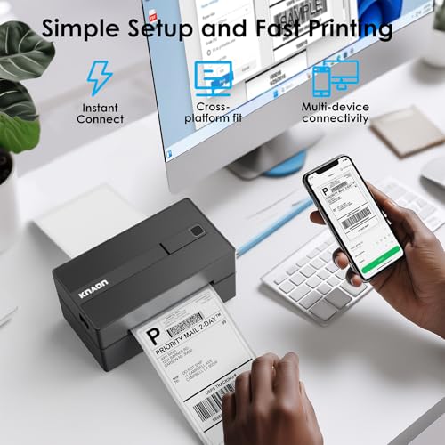 Portable & Stylish Design: KNAON multi-function thermal label printer offers user-friendly operation in a compact design. Its perfect size (7.17 x 3.9 x 3.43 inches) makes it simple to store anywhere. With a fast printing speed of up to 180 mm/s and support for paper widths from 1.5 to 4.2 inches. The package also includes 10 test printing papers to get you started right away.