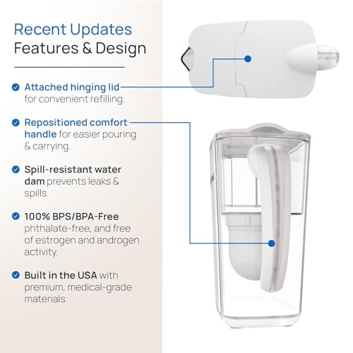 NEW DESIGN August 2024 Clearly Filtered Water Pitcher – It’s time to protect yourself with healthy hydration. Hazardous contaminants are found in ordinary tap water – including pharmaceuticals, microplastics, heavy metals, and phthalates. The redesigned Clearly Filtered Water Pitcher has the most ergonomic comfort handle and an easy hinge fill lid, and is still the most powerful pitcher on the planet. Get clean water you can trust – anywhere – at home, the office, college dorm, or even RVing.
