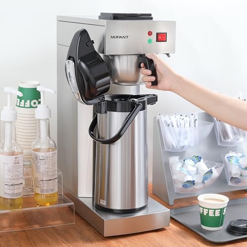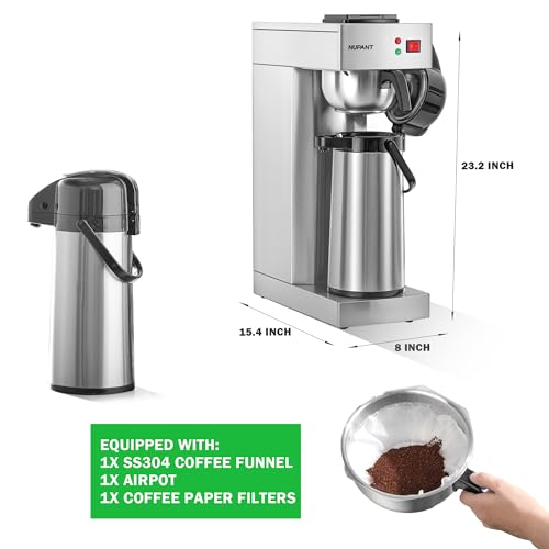 Richer Coffee Extraction: The Large flat bottom filter basket prevents coffee grounds from overflowing, equipped with a unique spray head, the industrial coffee brewer allows thorough contact between hot water and coffee powder, resulting in richer extraction and maximum flavor with each fresh brew. Whether you want coffee for 10 people or 100, this airpot coffee maker delivers consistently excellent flavor brew after brew