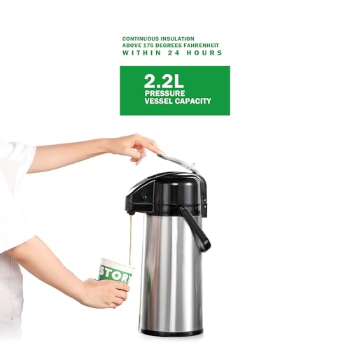 Large Brewing with Portable Airpot: This industrial coffee maker can brew a maximum 2.2 liter of coffee in 9 mintues. The capacity of the airpot is 2.2L/74OZ, its wide opening, handle and lever-style spout allow for easy filling, transporting, cleaning and pouring. Ideal for outdoor activities, home life, office, school, restaurant, cafe or other occasion where lots of coffee is needed on the go