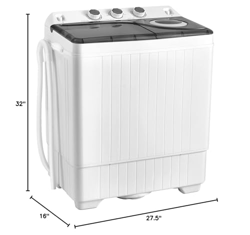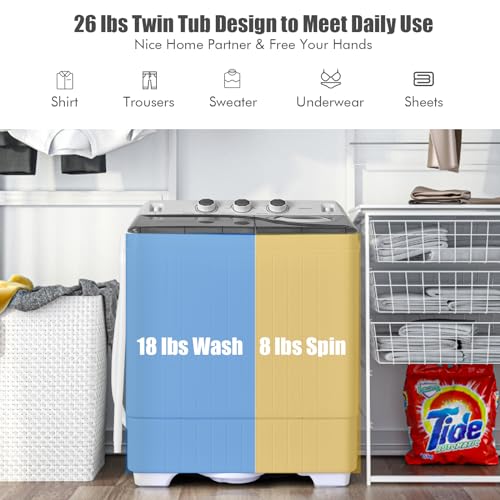 COSTWAY Twin Tub 26lbs Capacity Laundry Washer Portable Washing Machine, 18lbs, Grey+White