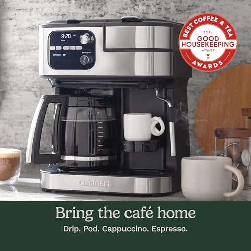 4-IN-1 BARISTA BAR: The Cuisinart Coffee Center Barista Bar 4-in-1 Coffee Maker lets you enjoy up to 12 cups* of coffee (*cup equals approx. 5 oz. (varies by brewing technique) and single-serve cappuccinos, lattes, and espresso.)
