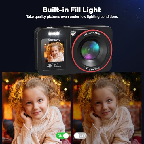 【4K Ultra HD & 64MP Digital Camera】The DEATTI video camera delivers 4K video and 64MP photos, ensuring detailed and crystal-clear images. With 18X digital zoom, full-light function, and autofocus, it’s a perfect photography cameras for beginners.