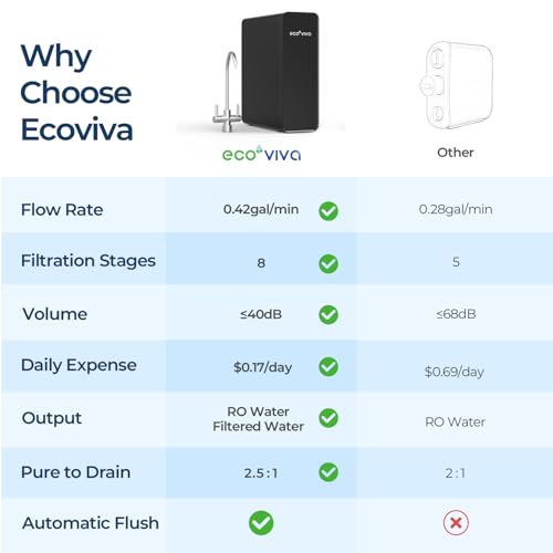 Ecoviva Under Sink Reverse Osmosis System, 8-Stage Water Filtration System, 600 GPD Water Purifier, Fast Dispense, 2.5:1 Pure to Drain, Easy Installation, Reduce PFAS, NSF/ANSI 58 Certified