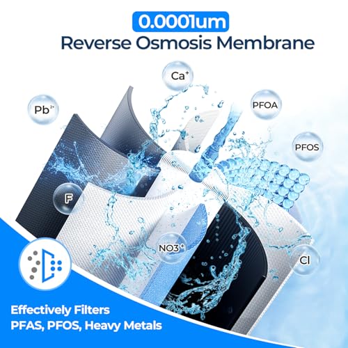 8 Stage Filtration: The reverse osmosis system includes a 0.0001 μm membrane that effectively filters PFAS, heavy metals like lead, arsenic, and aluminum even as the PCT filter enhances taste. This RO system is NSF/ANSI 58 certified for water assurance