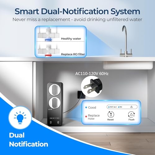 Smart & Small Design: The RO system offers real-time filter life monitoring at the system panel and faucet O-ring for simple water tracking. Enjoy peace of mind with pure water. Compact at 13.77″ x 5.31″ x 14.35″, it saves 75% of under sink space