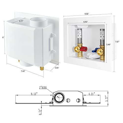 EFIELD Washing Machine Outlet Box with Center Drain 1/2-inch Push-Fit White, with Stainless Water Hammer Arrestor,(WM010)