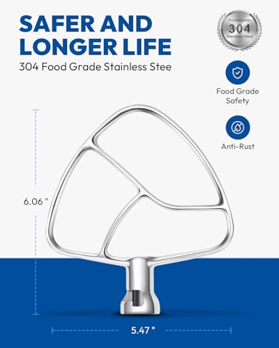 Excellent Quality, Durable and Long-lasting:Our paddle attachment is made of high-quality food-grade 304 stainless steel, which is durable and rust-proof;The uncoated and highly polished stainless steel surface allows you to enjoy a food-safe and easy-to-clean baking experience without worrying about the metal plating falling off.