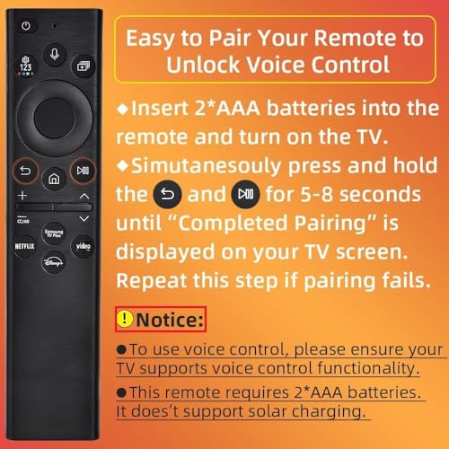 for Samsung TV Remote Control Replacement, for Samsung Remote Control for Smart Tv with Voice Control, for Frame Tv Remote Smasung Crystal Neo LED 4K Ultra HD TVs(No Solar) 2-Year Warranty.