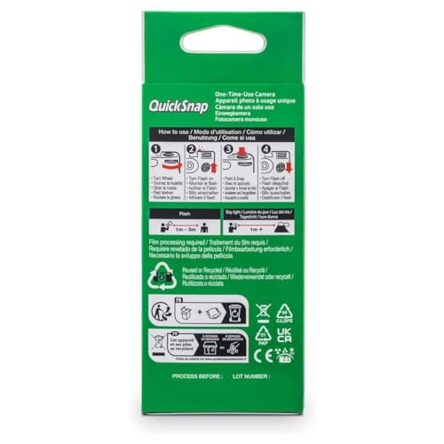 The QuickSnap Flash 400 camera features a compact body and comes pre-loaded with Fujicolor 400 speed film. This One-Time-Use camera produces very sharp pictures and features a 10-foot built in flash. The QuickSnap Flash 400 camera is fun & easy to use, and is great for taking pictures indoors or outdoors. The continuous flash switch makes it easier to take multiple shots, letting you concentrate entirely on the pictures!