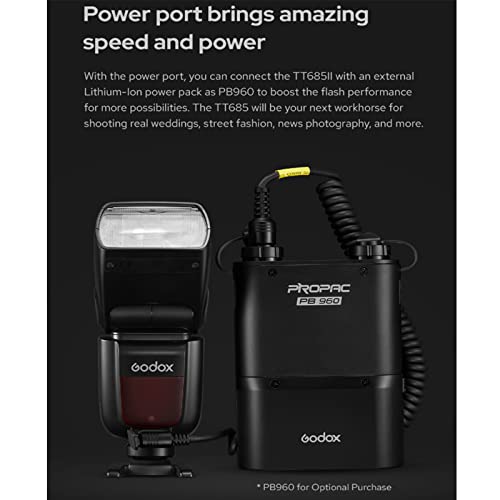 【External Power Supply Design】Design with the power port, Type-C Update port, and sync cord jack bring more convenience, you can connect the TT685ll with an external lithium-ion power pack as PB960(sold separately) to boost the flash performance for more possibilities. TT685II will be your next workhorse for shooting real weddings, street fashion, news photography, and more.