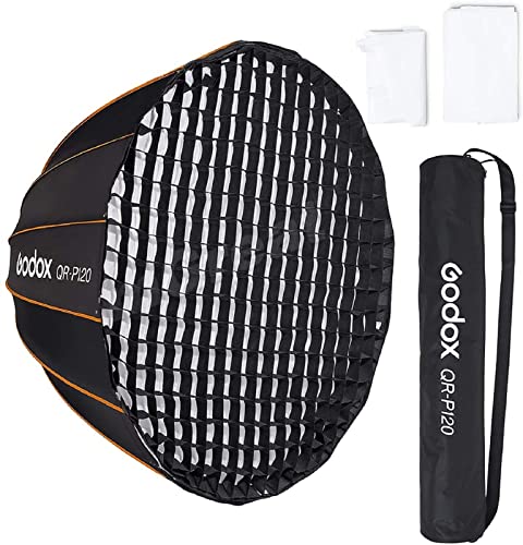 GODOX QR-P120 47.1 Inch/120CM Parabolic Softbox Bowens Mount, Quick Release Parabolic Softbox, with Front & Inner Diffuser SL-60W AD600BM VL150 UL150 SL150II Amaran 100X 200D 200X w/Grid