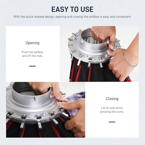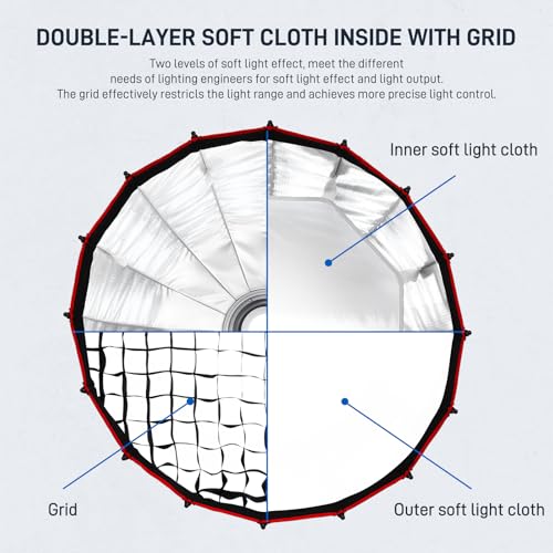 GVM 23.62in/60cm Parabolic Softbox, Quick Release with Diffusers/Grid for Video Continuous Lighting GVM Video Light SD200B/SD200D/SD300B/SD300D/SD500B/SD650B and Other Bowens Mount Light
