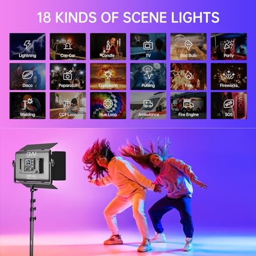 Built-in Upgraded Scenes Modes: This RGB Video Light supports 18 kinds of special lighting scenes to enrich your shooting environment, including TV, Candle, Cop Car, Lightning, Paparazzi, Disco, Party, Bad bulb, etc. adopts a constant current control design which brings better effect for video shooting with no stroboscopic phenomenon.