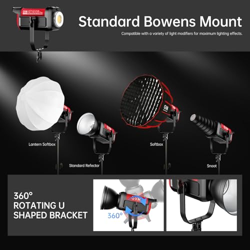 STANDARD BOWENS MOUNT AND SHIPPING BOX: Photography light Designed with Bowens Mount, Compatible with a great variety of light modifiers, including softboxes, reflectors, beauty dishes, snoots, and more. 360° ROTATING U SHAPED BRACKET and allows you to easily adjust the light angles. GVM-SD300B LED Video Light comes with a SHIPPING BOX, the included foam padding effectively protects the light body and accessories for easy transport and safe storage, easy to carry for outdoor shooting.