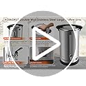The stainless steel coffee urn features with double-wall 304 stainless steel tank,304 stainless steel filter basket and percolator pipe with brew pad, viewable water gauge, non-drip faucet, twist-to-protected cover, cool-touch handles and heat-resistant base