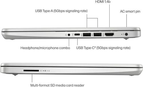 HP 14″ HD Student Business Laptop, Intel Quad-Core N4120, 16GB RAM, 384GB Storage, (128GB eMMC+256GB SD Card), 1 Year Office 365, Slim Design, Webcam, HDMI, Bluetooth, WiFi, Win 11 S, Silver