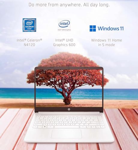 HP 14in Schools and Business Laptop, Intel Quad-Core N4120 CPU, 16GB RAM, 64GB eMMC, 256GB Micro SD, 1-Y Office 365, Webcam, HDMI, WiFi, Win 11 S(White)