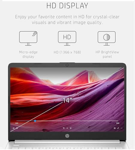 HD MICRO-EDGE 14inch DISPLAY. 14.0″ diagonal, 1366 x 768, BrightView Screen. Ultra-wide viewing and narrow bezel design for your work and studies.