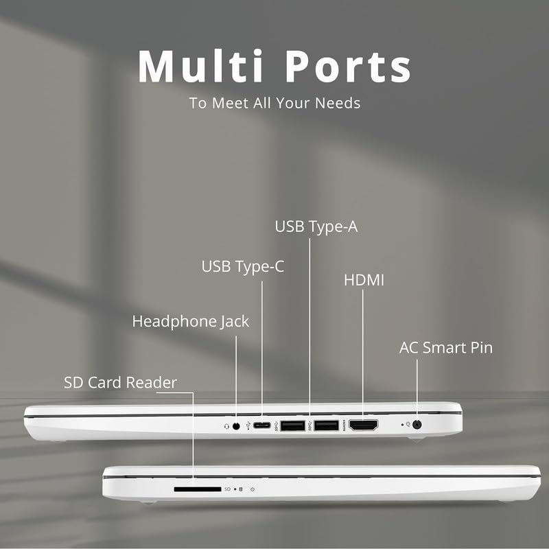 HP 2024 14″ Laptop Notebook Thin Light for Students Business, Quad-Core Intel N4120, 8GB RAM, 192GB (64GB eMMC+ 128GB Card), 1 Year Office 365, Webcam, WiFi, Windows 11S, HubxcelAccessory White