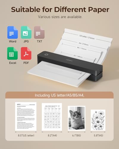 HPRT Portable Thermal Printer for Travel, Inkless Printer Support 8.5″ X 11″ US Letter & A4 A5, Bluetooth Wireless Printer Compatible with iOS, Android, Laptop for Car, Office, Outdoor, School, Black