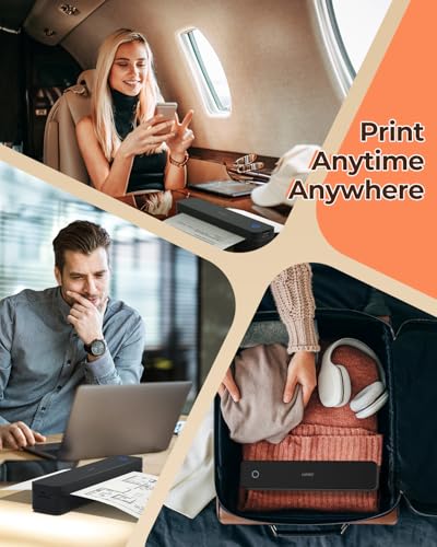 [Long-Lasting 240-Page Battery Life]Whether you are on a business trip, camping or other emergency situations, you can take it with you. It has a built-in 2000mAh rechargeable battery and can print up to 240 pages on a single charge (only black and white printing). No power socket is required when printing, making it your real portable printing partner.