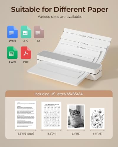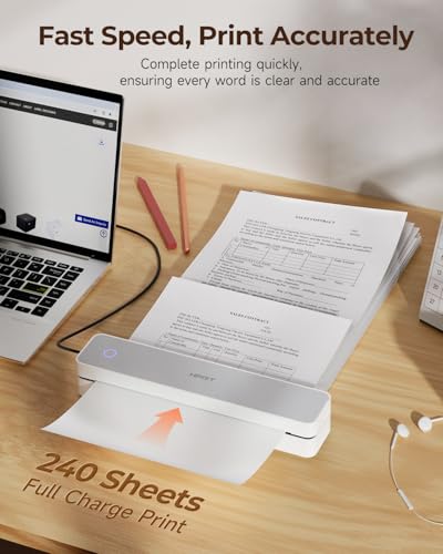 HPRT Portable Thermal Printer for Travel, Inkless Printer Support 8.5″ X 11″ US Letter & A4 A5, Bluetooth Wireless Printer Compatible with iOS, Android, Laptop for Car, Office, Outdoor, School, White