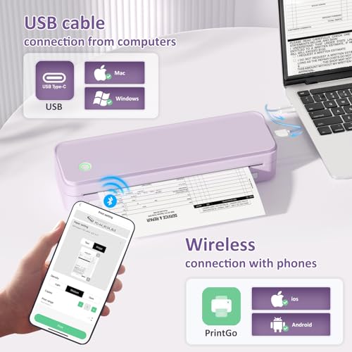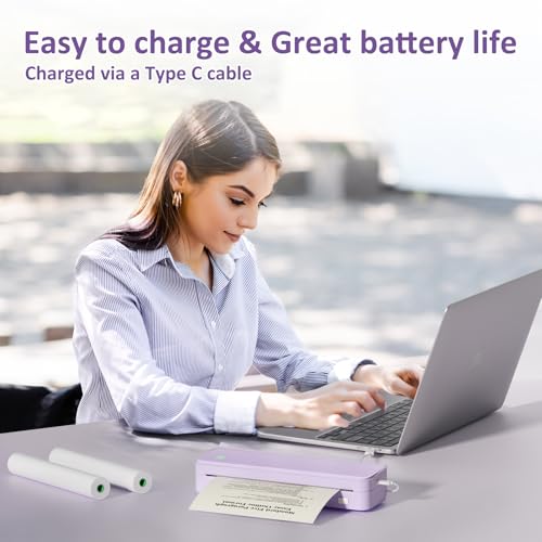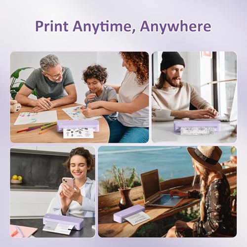 Inkless Portable Printer for Travel, Wireless Thermal Printer Supports 8.5 x 11 Inch US Letter Size, Bluetooth Machine Includes Carry Case and 3 Rolls of Thermal Paper Kit, Purple