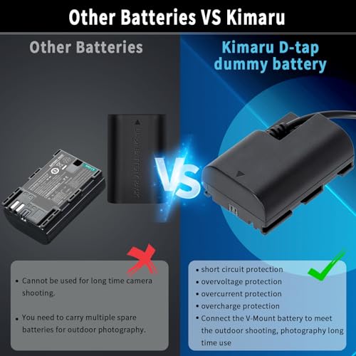 Kimaru D-TAP to LP-E6NH LP-E6N LP-E6 Dummy Battery Cable for Canon EOS R R5 R6 R7,80D 70D 60D 90D,5D Mark II III IV,6D 7D,6D Mark II,7D Mark II,60Da 5Ds 5Ds R Cameras.