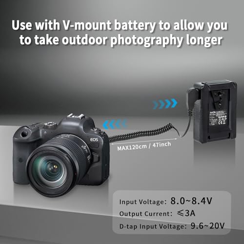 Usage Scenario: D tap LP-E6 power cable for continuous shooting via V mount batteries. It is a good choice for outdoor shooting, time-lapse photography, video conference, live streaming, extending studio sessions, uploading files to PC and more.