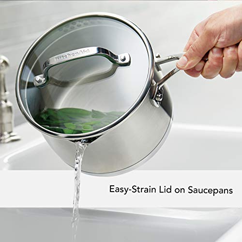 STRAINING LIDS: Tempered glass lids lock in heat to bring the most out of every ingredient; saucepan lids feature built-in strainers to strain liquids without the need of a colander