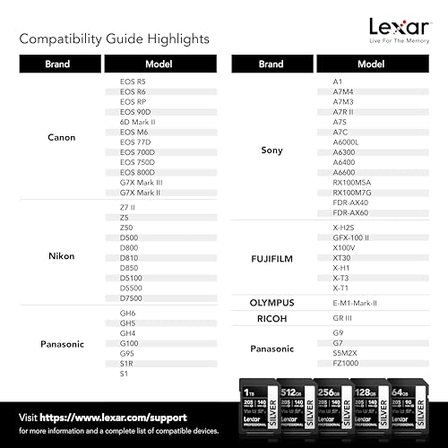 The Lexar Professional SILVER SDXC UHS-I Card delivers 205MB/s max read and 140MB/s max write speeds to help you capture better photos and videos and to accelerate your workflow. Rated V30, it records 4K video at 60FPS for stunning, stutter-free footage. It’s temperature-, x-ray-, vibration-, magnetic-, shock-, wear-, and drop-proof and it comes with a lifetime limited warranty for maximum peace of mind.