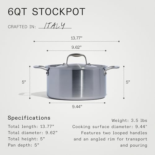 Made In Cookware – 6 Quart Stainless Steel Stock Pot With Lid – 5 Ply Stainless Clad – Professional Cookware – Crafted in Italy – Induction Compatible