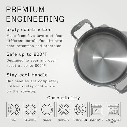 Crucial for Each and every Kitchen – The Made In Stainless Clad Stock Pot is a will have to-have kitchen tool, offering maximum heat keep an eye on, responsiveness, and versatility to elevate your cooking enjoy