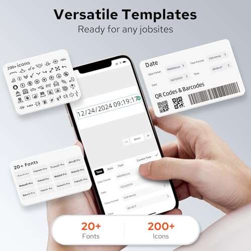 Seamless Customization at Your Fingertips – With 48 templates, 200+ icons, and 20+ fonts, the MakeID Pro app simplifies creating complex labels, including barcodes and QR codes, and supports bulk data import for efficient on-site labeling.