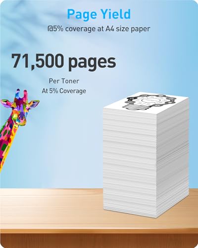 Page Yield: up to 71,500 pages per black toner, @5% coverage at A4 size paper